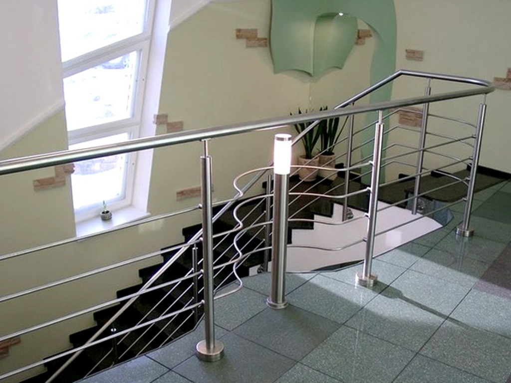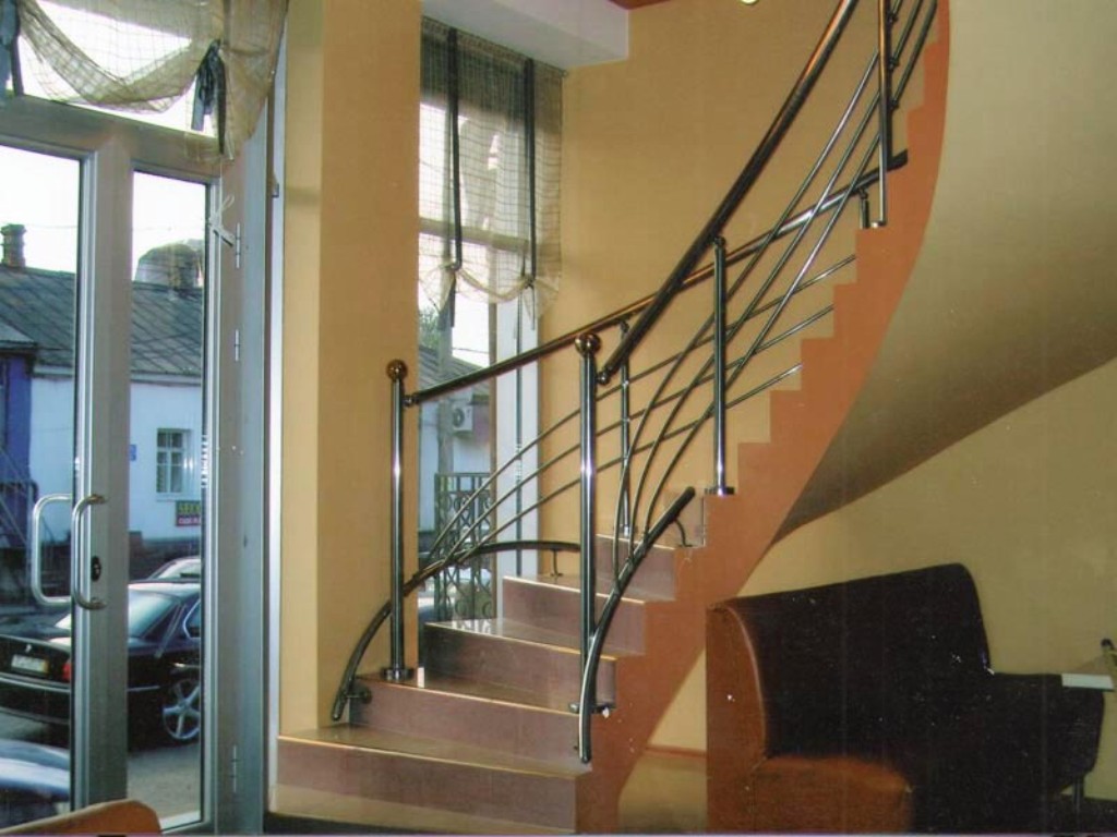 Наравне с входной дверью лестница – лицо каждого дома, офиса или отделения банка. Сделать лестницу уникальной помогут красивые, бросающиеся в глаза эксклюзивные перила. Перила могут быть выполнены в форме, отражающей суть компании, занимающей офис, то есть, перед входом в отделение банка конструкция перил может напоминать какую-нибудь валюту, возле музыкальной школы – скрипичный ключ и т.п. Конечно, такое выделение ключевого направления деятельности необязательно, все зависит от фантазии руководства и администрации.